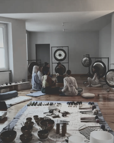This 22hour training unfolds in a small group setting where everyone has the opportunity to play a Gong. We include both theory and practice, learning to listen, play and facilitate with confidence. Inspired by Yasemin’s background in classical music and her education in sound therapy, the training focuses on planetary gongs, instruments tuned to the frequency of the cosmos. Through them, we explore the relationship between resonance, emotion and embodiment. You’ll learn how to use sound as a tool for restoration, connection and awareness, grounded in both: science and art.